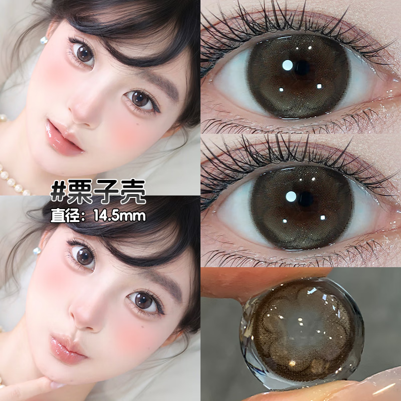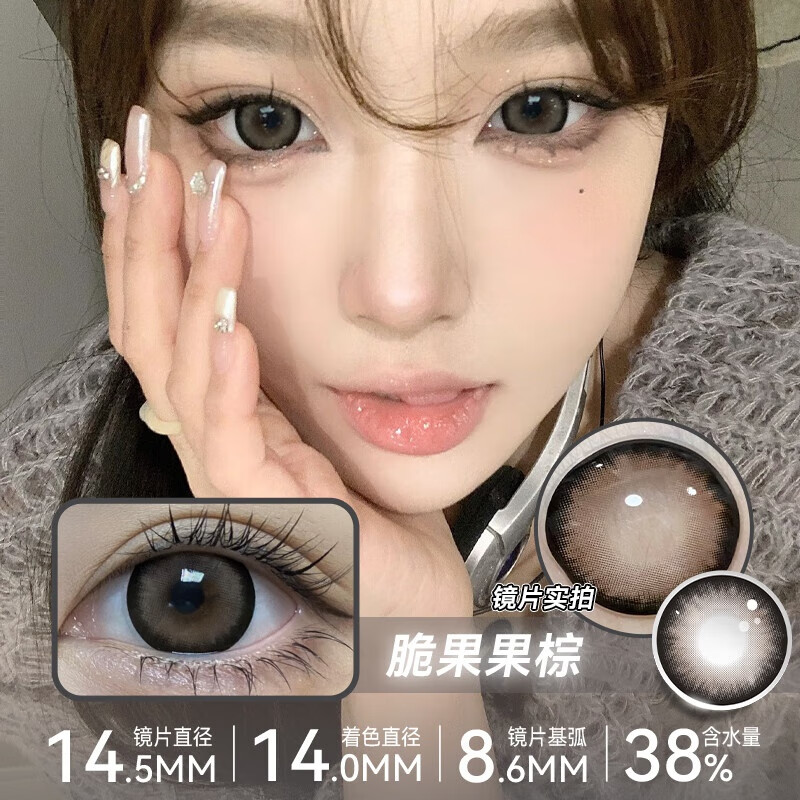 半年抛甜妹学生 带度数 混血美瞳大小直径彩色隐形眼镜 Tina媞娜 脆果果棕 平光0度【左右眼不同度数 请下单备注度数】