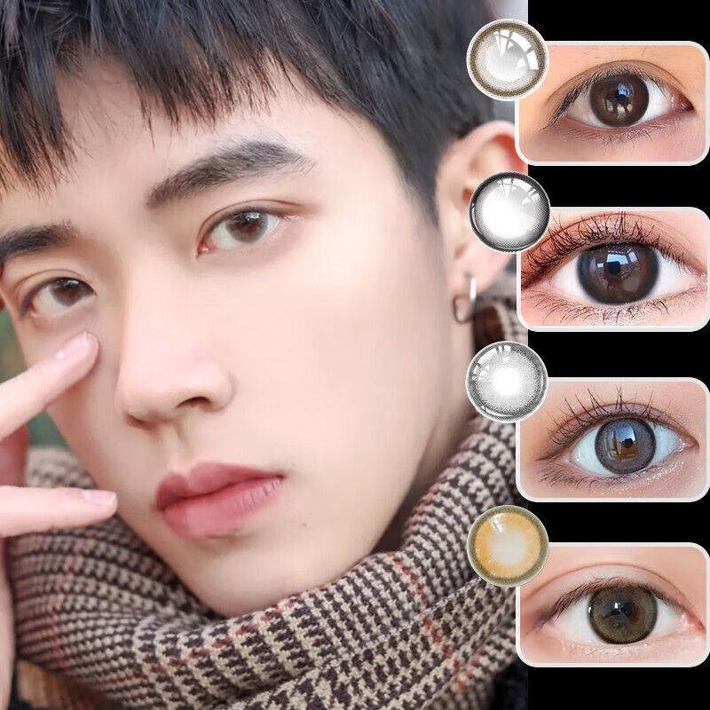 艾洛妃男士美瞳隐形眼镜半年抛小直径男士美瞳黑色蓝色男款自然款黑色欧美混血棕灰美瞳男带度数 大美目黑14.5 100度