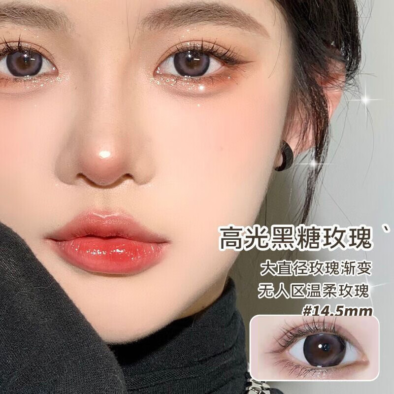 美瞳大直径14.5半年抛混血可爱女学生同款水润舒适纯欲风2片装黑色自然带度数隐形眼镜艾洛妃 黑糖玫瑰14.5 100度