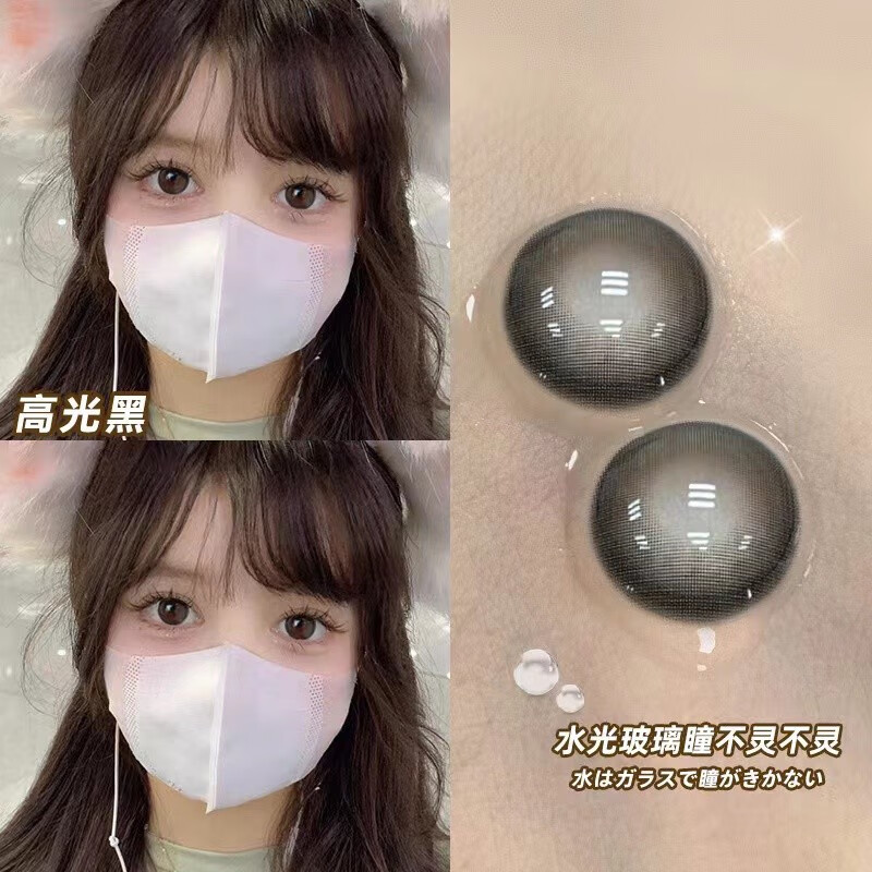 美瞳半年抛大直径14.5大美目黑蓝棕美瞳自然混血带度数彩色隐形眼镜223新款 高光黑14.5 100度