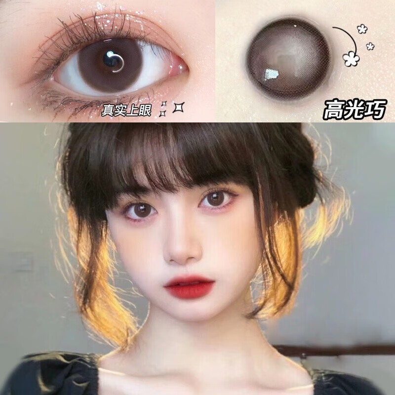 高光巧棕美瞳半年抛隐形眼镜大直径自然款黑色男女带度数美瞳欧美混血灰色彩色隐形眼镜2片装 高光巧14.5 0度【左右眼不同度数 请下单备注度数】