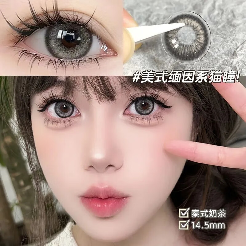 嗳暮迪泰式奶茶美瞳半年抛灰色混血大直径2025年新款隐形眼镜LX带度数TN 泰式奶茶灰14.5mm【HT14-5】 0度