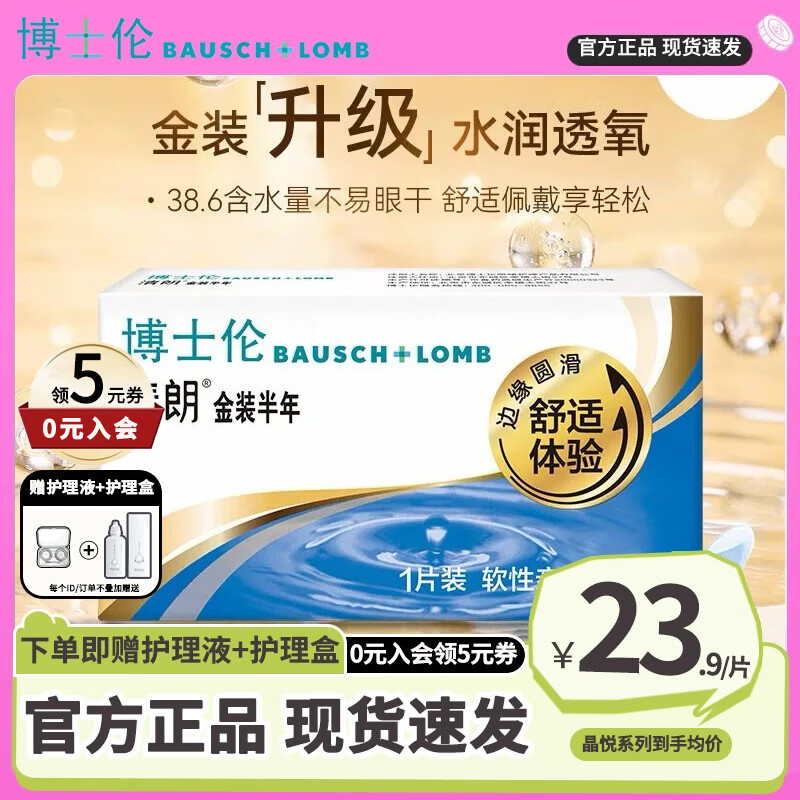 博士伦清朗金装隐形眼镜半年抛+送美瞳盒护理液近视带度数透明片正品 1片装【晶悦系列性价比】 500度