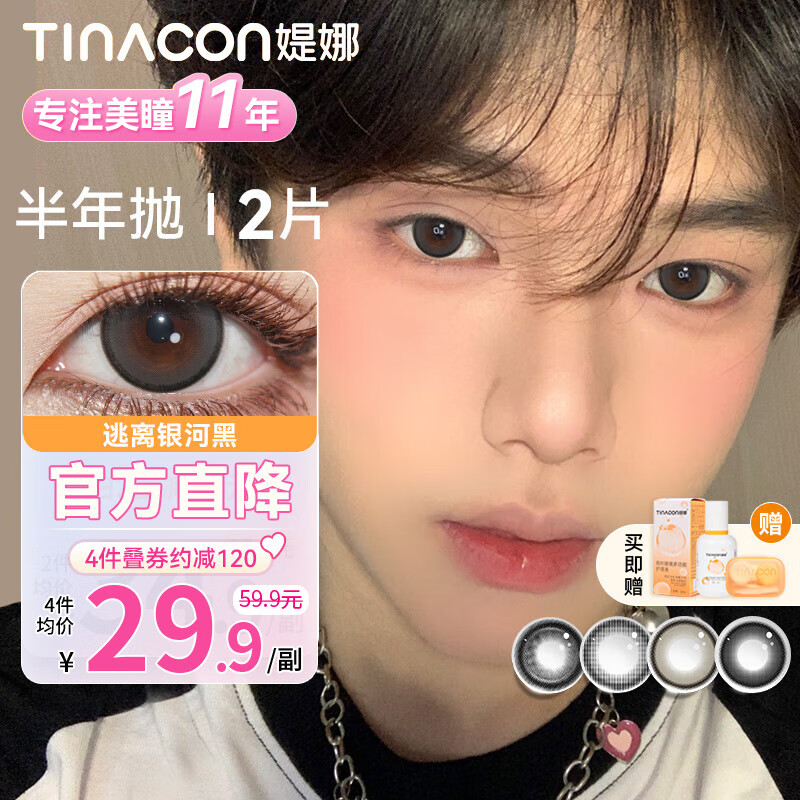 媞娜tina缇娜美瞳半年抛彩色隐形眼镜黑色美瞳小直径带度数日常男士 镜光棕14.2mm 100度