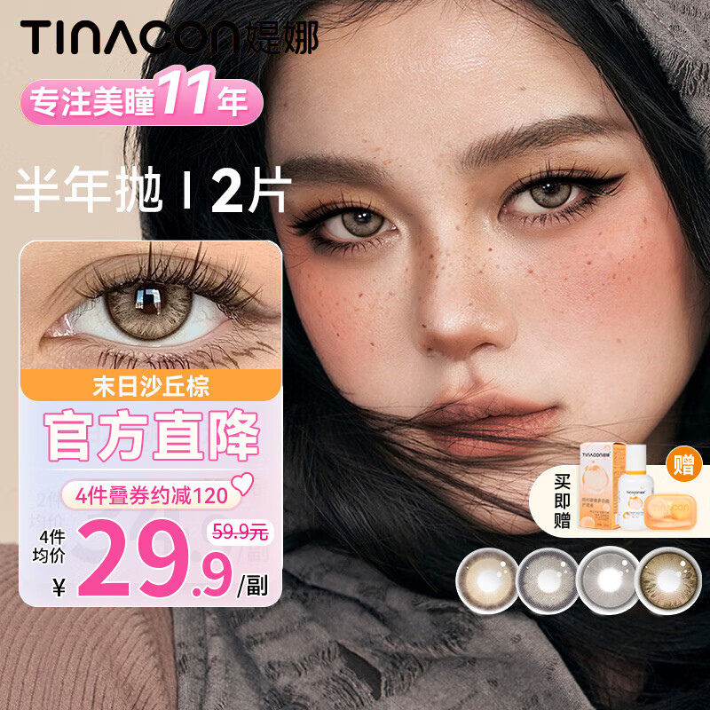 媞娜Tina缇娜美瞳半年抛混血棕色美瞳隐形眼镜大小直径亚裔带度数眼镜 山楂树棕14.5mm 0度