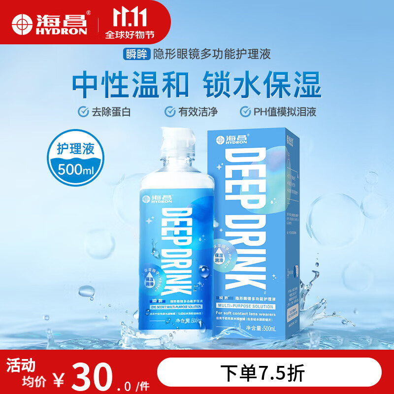 海昌水亮洁隐形眼镜液护理液500ml+120ml美瞳护理液清洁杀菌除蛋白