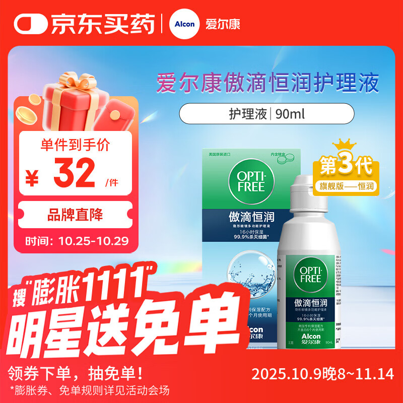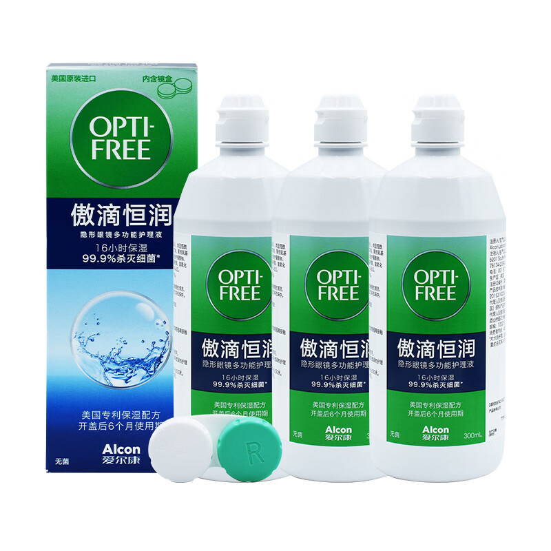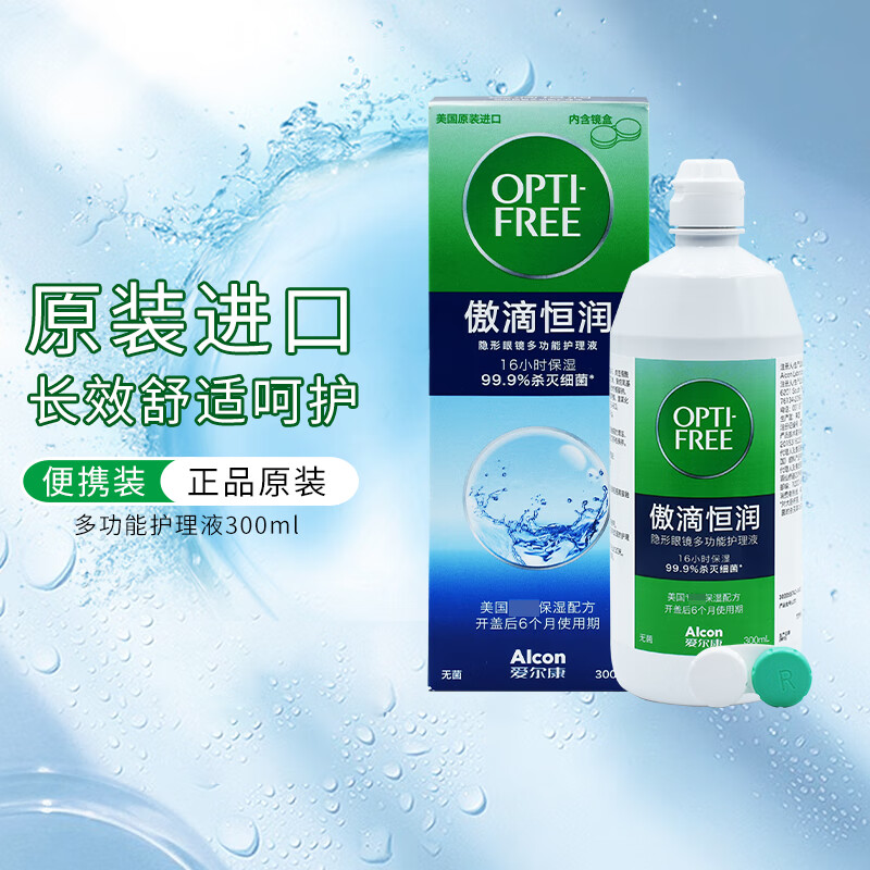 爱尔康傲滴隐形眼镜护理液近视美瞳彩色隐形眼镜清洁液傲滴第三代恒润 恒润300ml【内附镜盒】