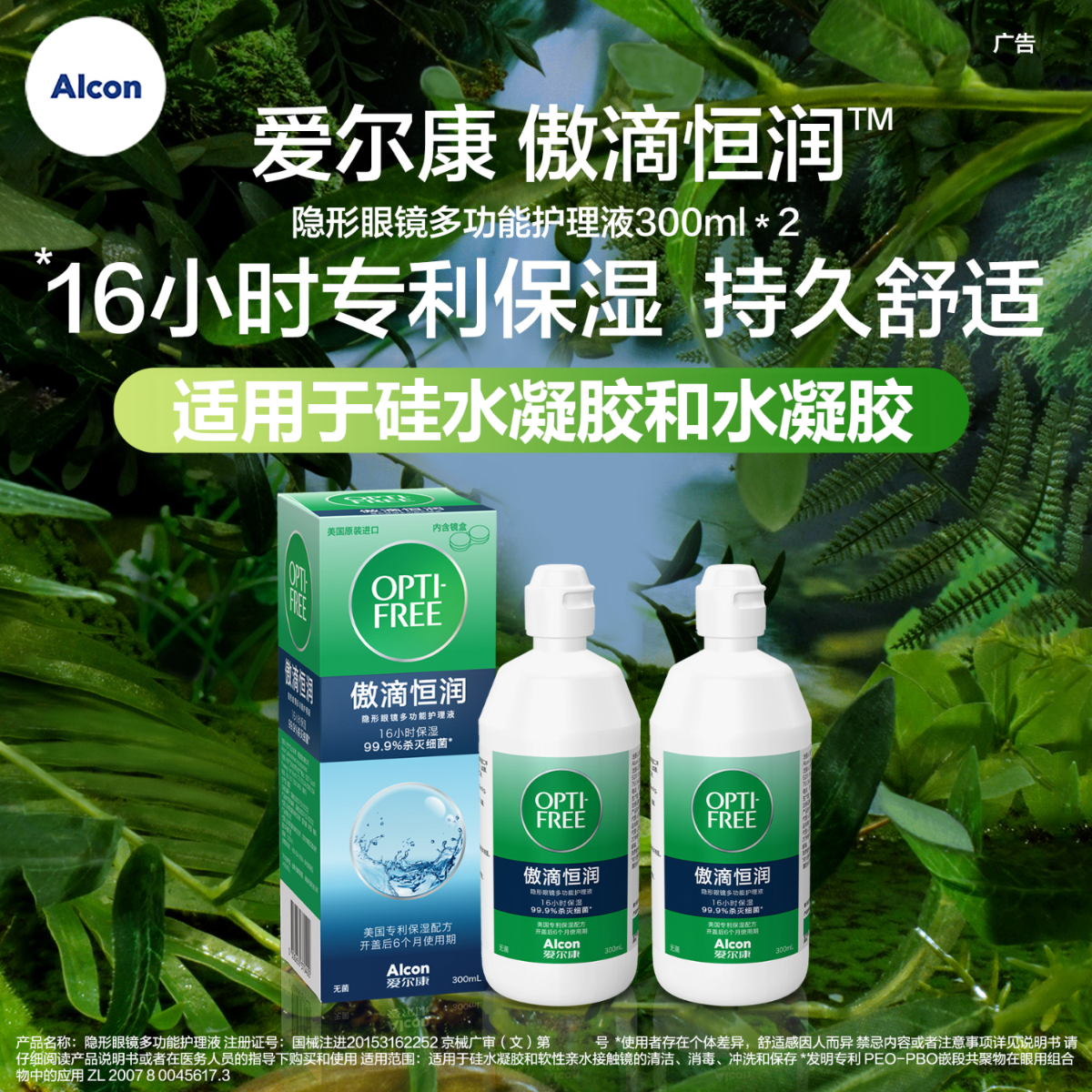 爱尔康傲滴恒润300ml护理液隐形眼镜护理液美瞳护理液 傲滴恒润300mL