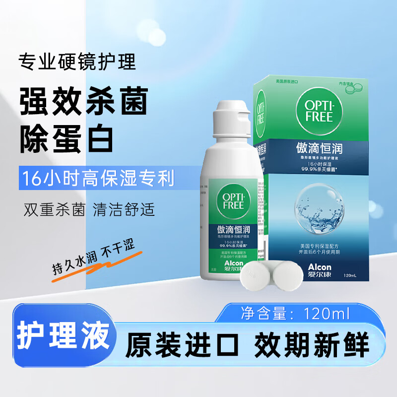 爱尔康傲滴恒润护理液120m隐形眼镜美瞳专用护理液强效杀菌 长效保湿 爱尔康傲滴恒润护理液120ml