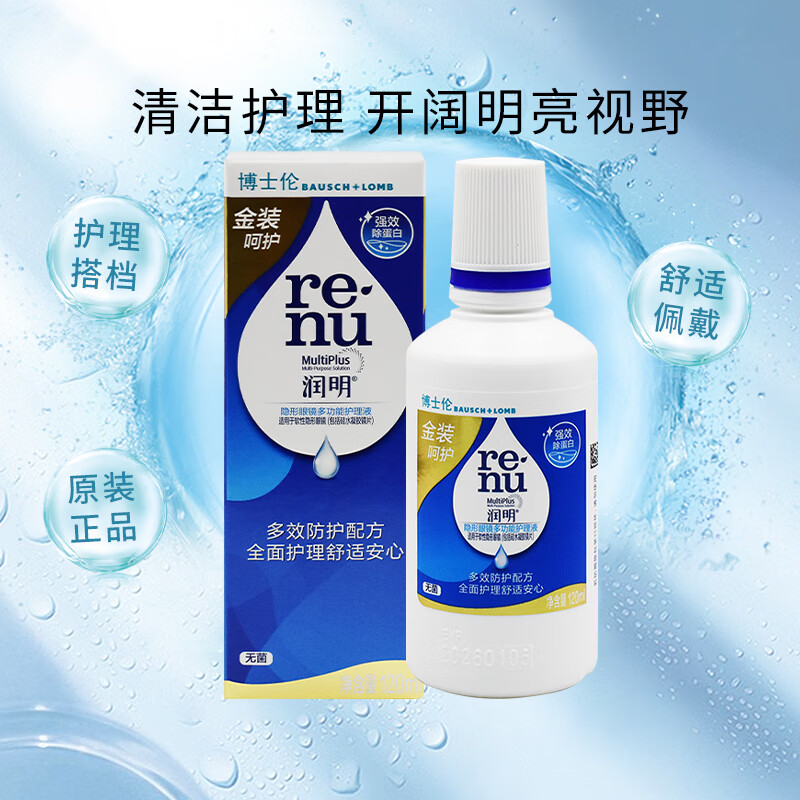 博士伦清透金装润明水灵隐形眼镜美瞳多功能护理液护理眼药水清洁除蛋白 博士伦润明120ml【官方授权 效期新鲜】