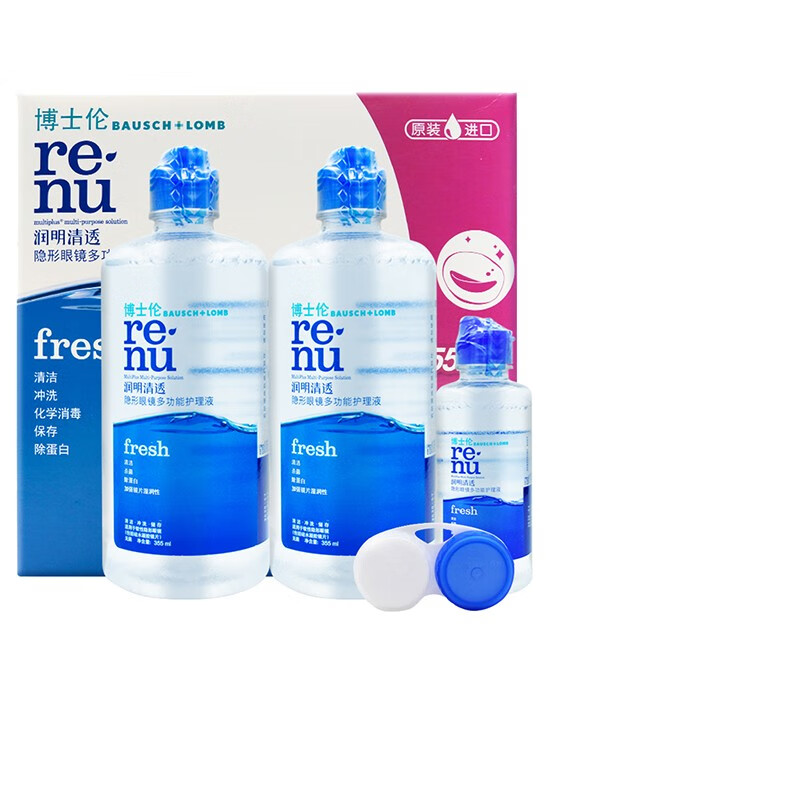 博士伦清透金装润明水灵隐形眼镜美瞳多功能护理液护理眼药水清洁除蛋白 润明清透355*2+120ml