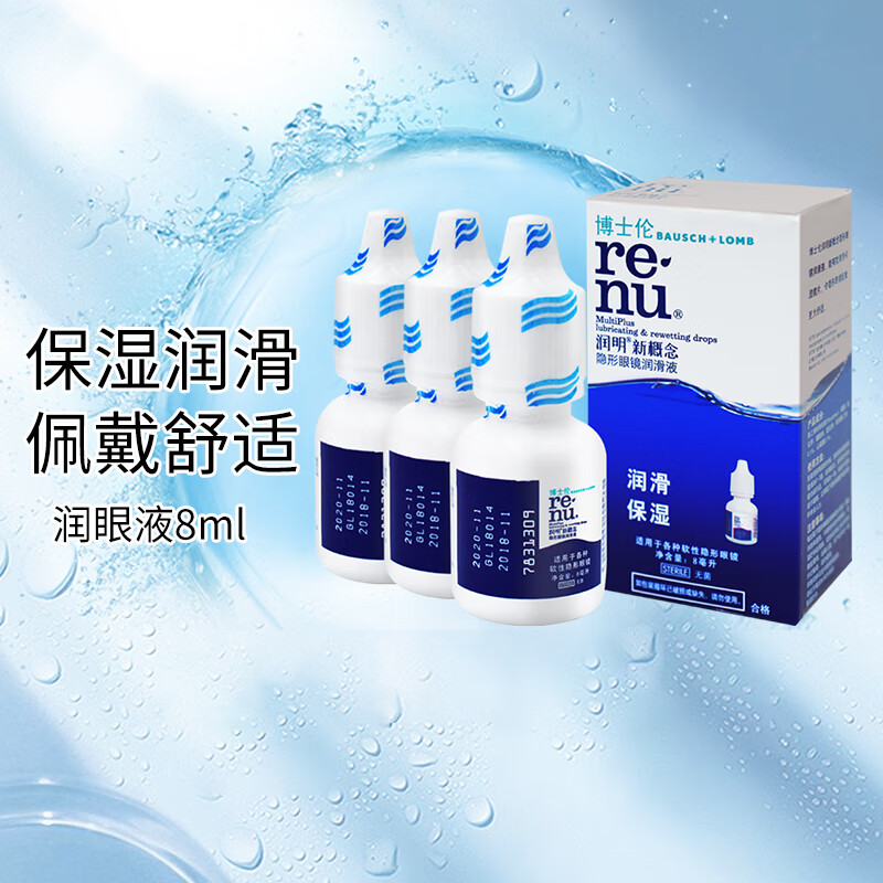 博士伦清透金装润明水灵隐形眼镜美瞳多功能护理液护理眼药水清洁除蛋白 润眼液8*3