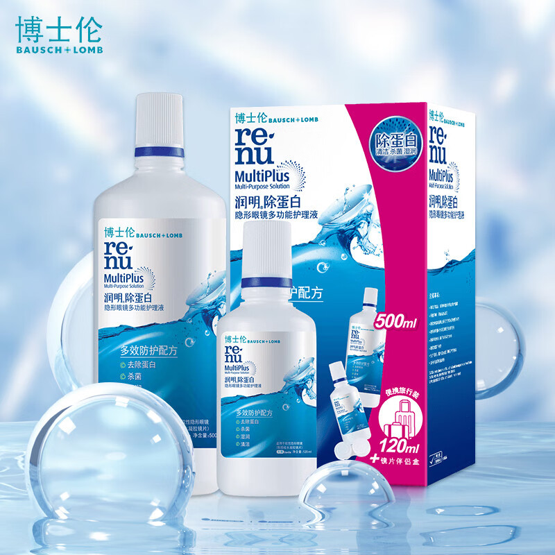 博士伦清透金装润明水灵隐形眼镜美瞳多功能护理液护理眼药水清洁除蛋白 博士伦润明水灵500+120ml