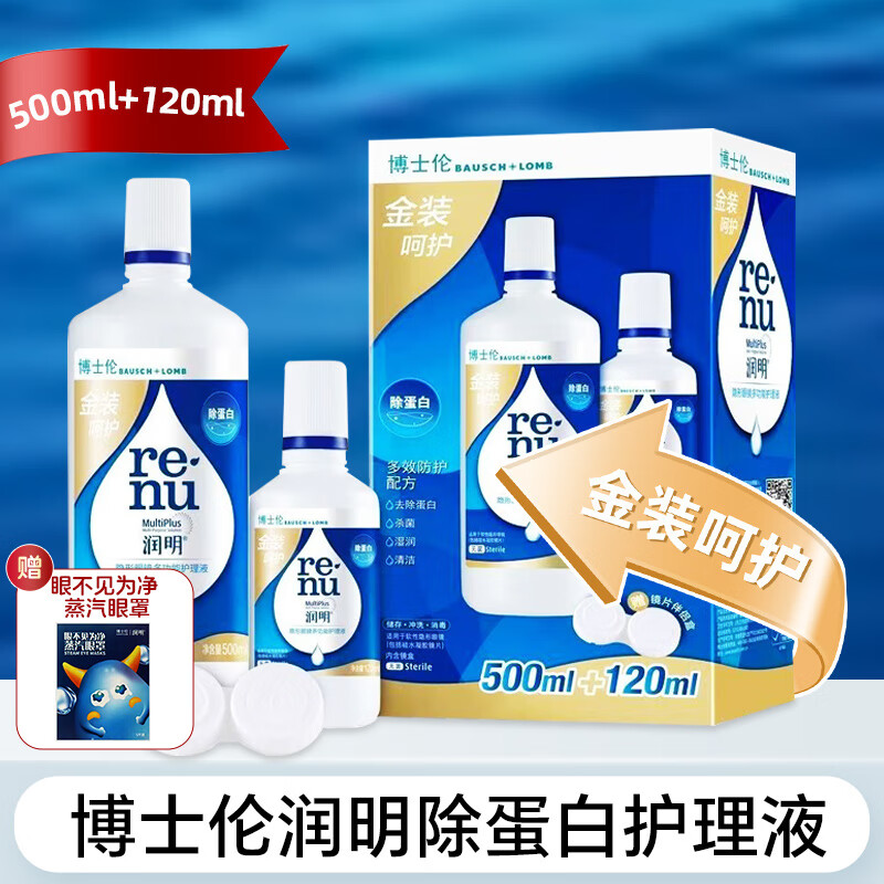 博士伦博士伦金装呵护润明清透液除蛋白杀菌清洁保湿护理近视隐形眼镜液 金装润明清透500ml+120ml【组合款】