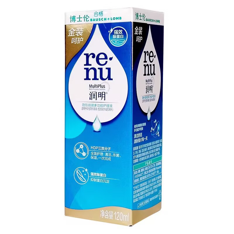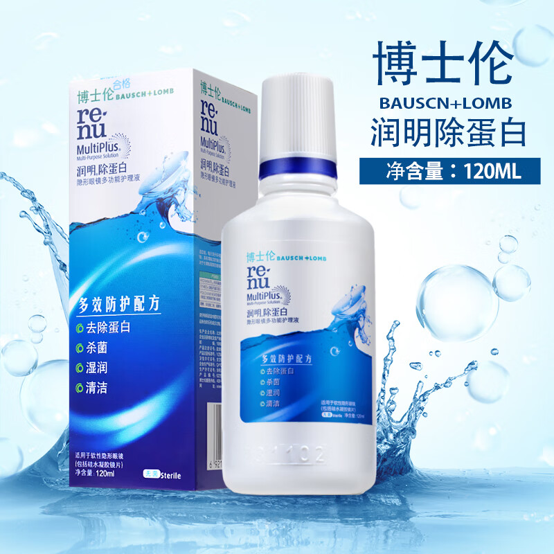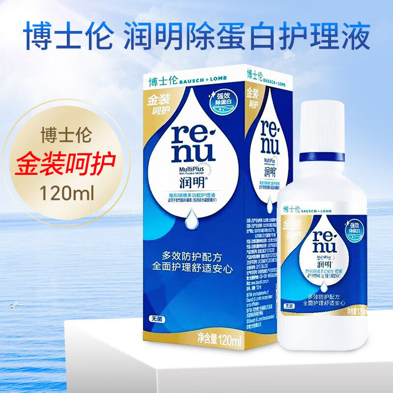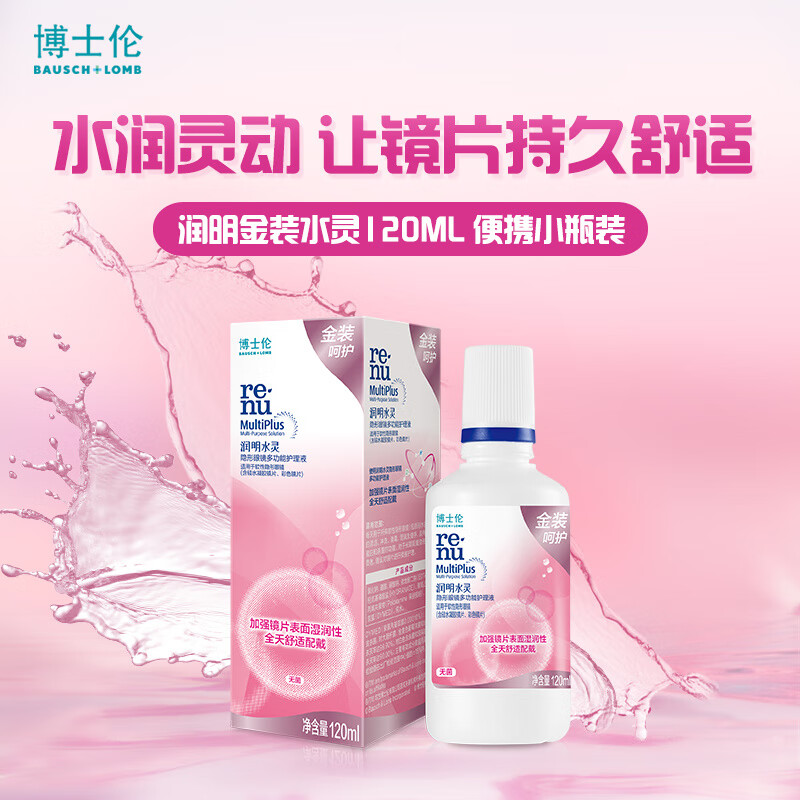 博士伦清透金装润明水灵隐形眼镜美瞳多功能护理液护理眼药水清洁除蛋白 博士伦润明水灵120ml
