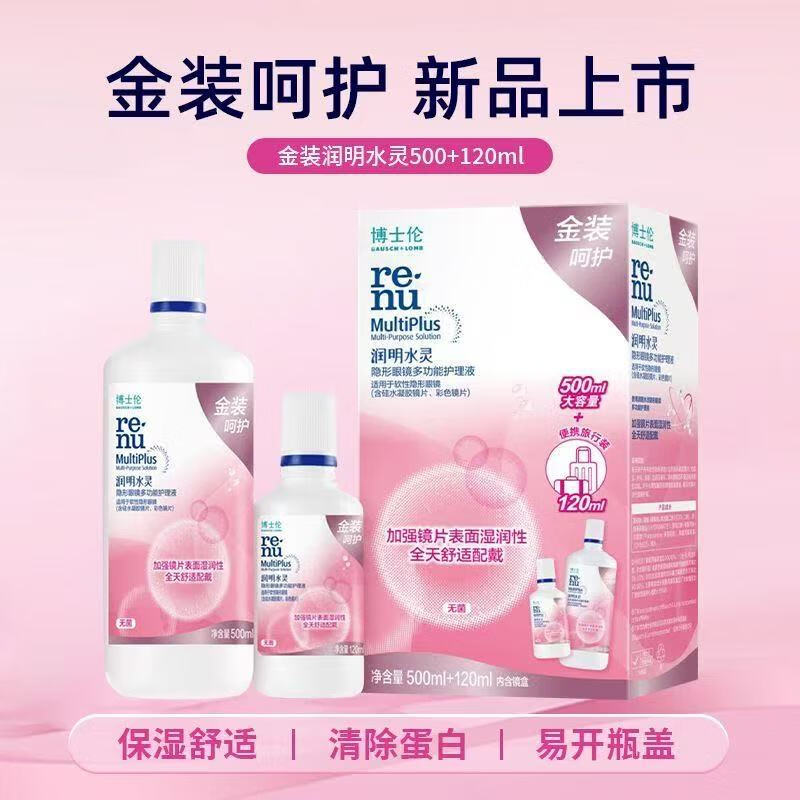 博士伦清透金装润明水灵隐形眼镜美瞳多功能护理液护理眼药水清洁除蛋白 博士伦金装润明500ml+120ml【效期新鲜】