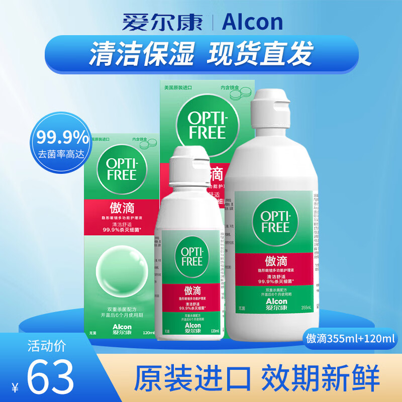 爱尔康傲滴近视隐形眼镜护理液355ml+120ml进口美瞳药水大小瓶便携旅行装