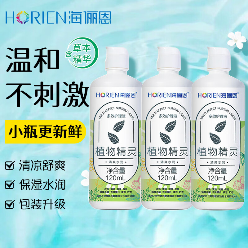 海俪恩(HORIEN)隐形眼镜护理液植物精灵美瞳护理液清凉润眼型水润保湿多效小瓶装 旅行装 植物精灵120ml