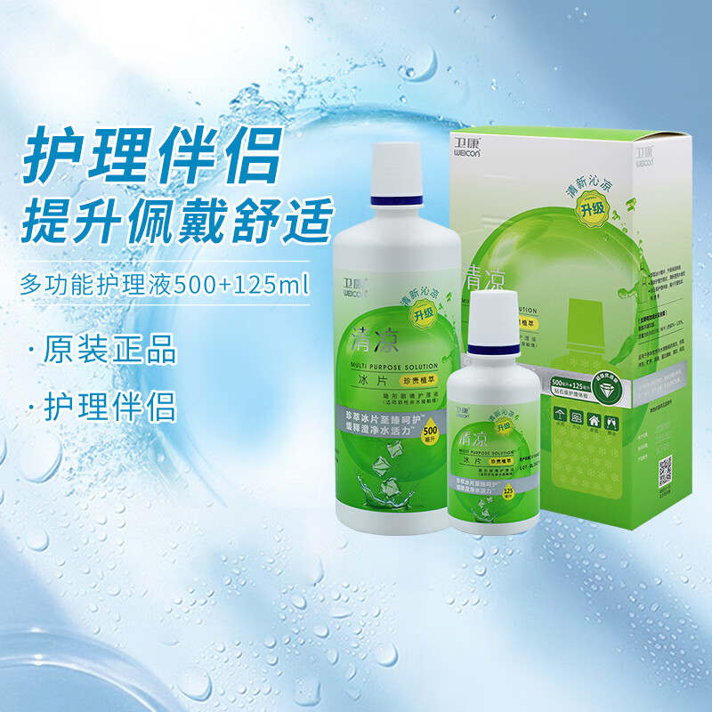 卫康清凉隐形眼镜多功能护理液大小瓶装近视美瞳药水清洗液 卫康清凉冰片500ml+125ml