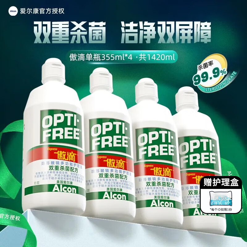 爱尔康傲滴隐形眼镜护理液大小瓶装冲洗液恒润美瞳药水清洗液眼镜水正品 傲滴355ml*4瓶【共1420ml】