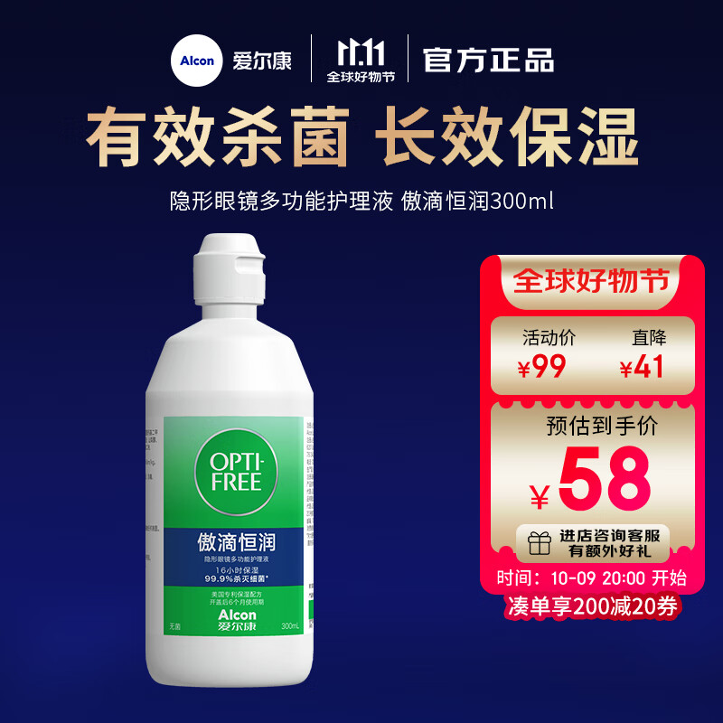 爱尔康傲滴第三代恒润隐形眼镜护理液美瞳眼镜杀菌保湿多功能小瓶套装 恒润300ml