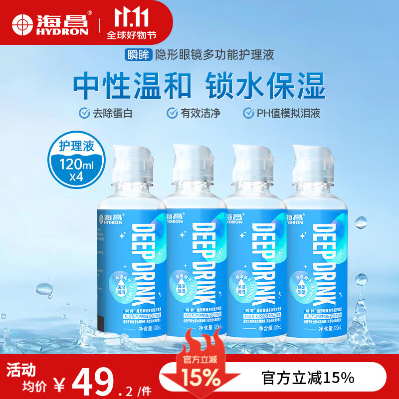 海昌 水亮洁深度清洁美瞳隐形眼镜护理液120ml装