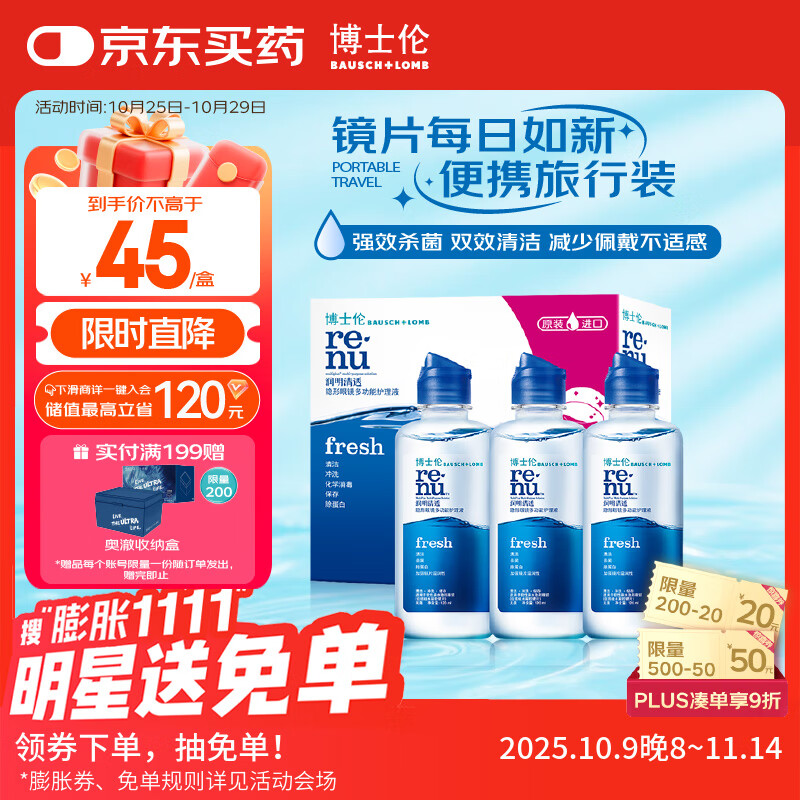博士伦润明清透隐形眼镜水护理液120mlx3瓶 隐形眼镜多功能护理液
