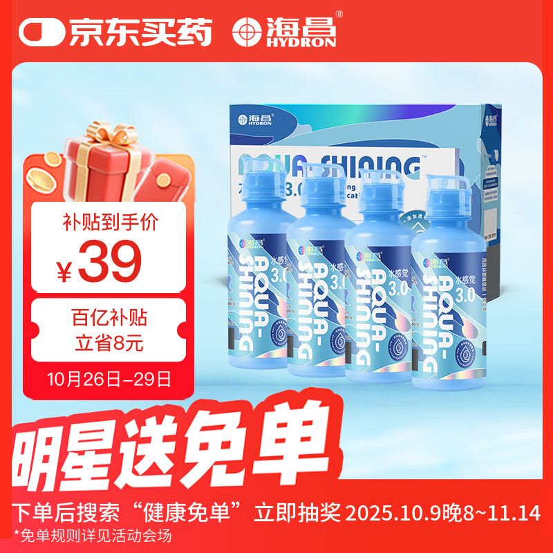 海昌 水感觉滋润补水美瞳隐形眼镜护理液120ml*4盒套装