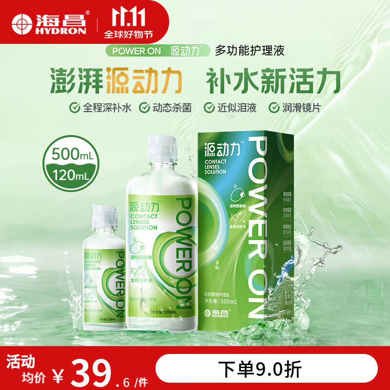 海昌源动力美瞳隐形眼镜护理液除蛋白锁水保湿大小瓶装 瞬眸500mL【居家首选】
