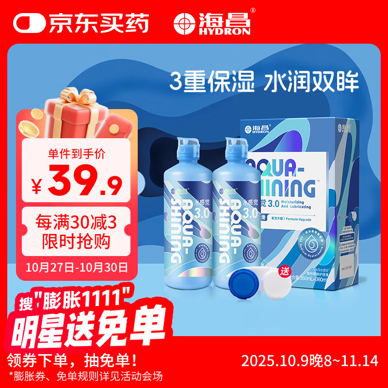 海昌隐形眼镜护理液水感觉3.0护理液360ml*2瓶 清洁滋润美瞳护理液