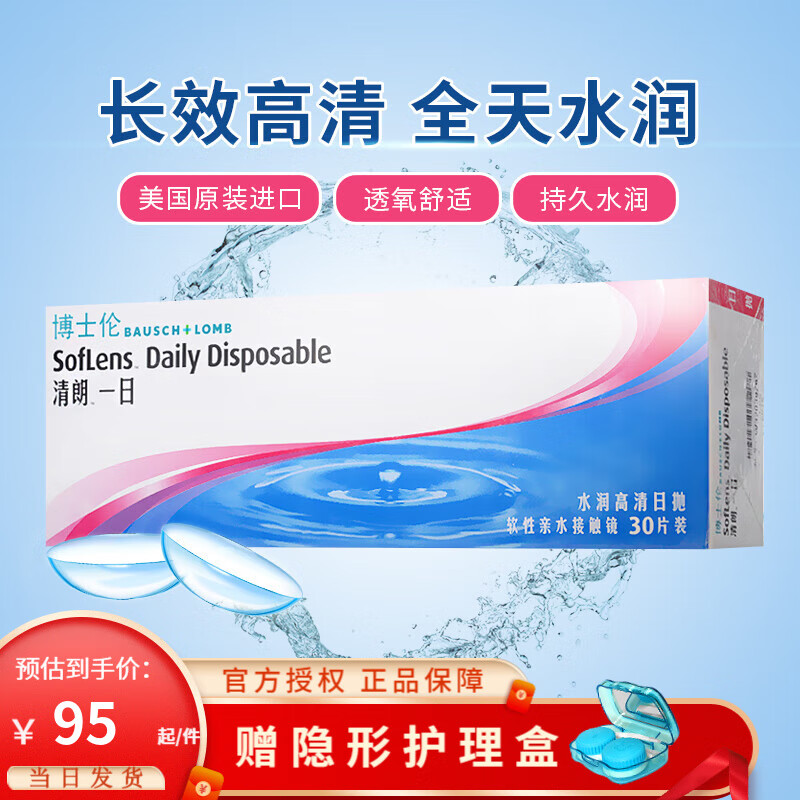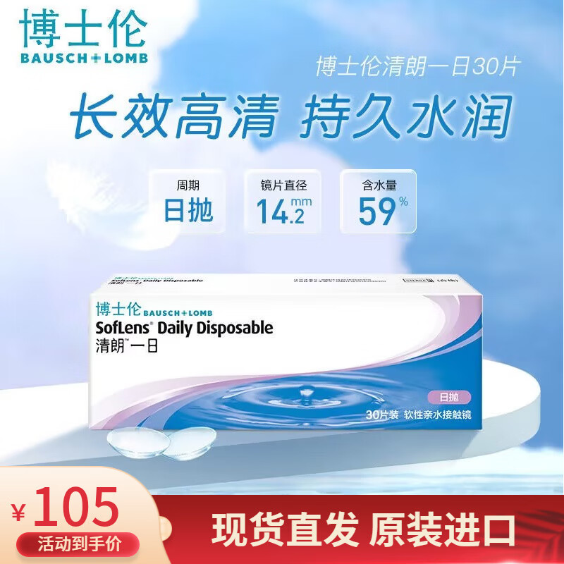 博士伦隐形眼镜日抛 清朗一日日抛30片装 透明片近视镜高光度隐形眼镜 100度