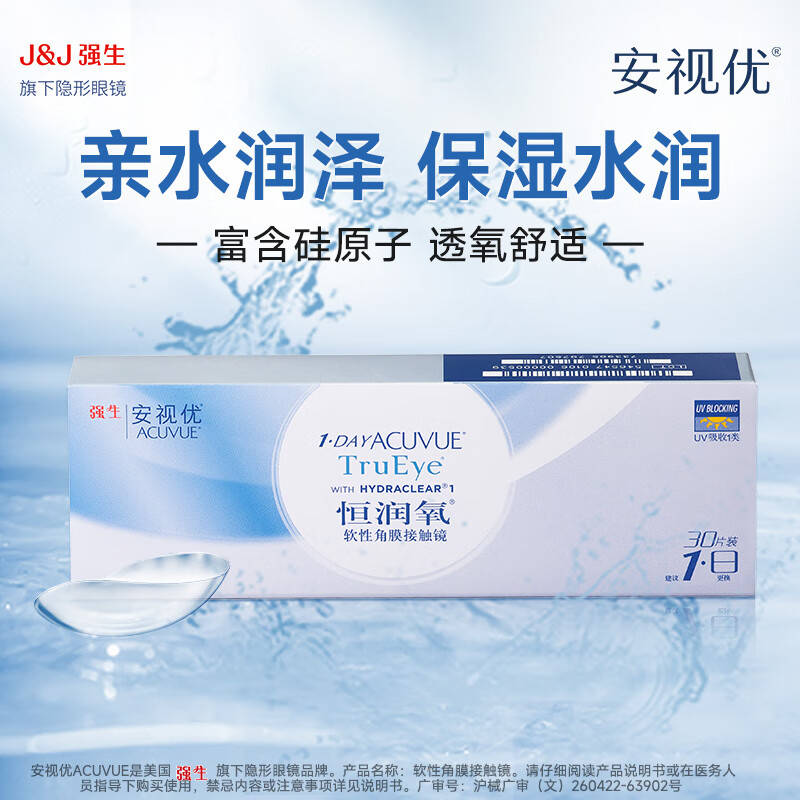 强生安视优恒润氧日抛30片硅水凝胶近视隐形眼镜有高度数隐形眼镜 日抛30片 425度