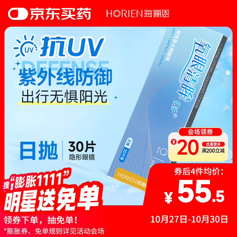 海俪恩 近视透明隐形眼镜抗uv 水润氧眼清眸 倍护 日抛30片 550度