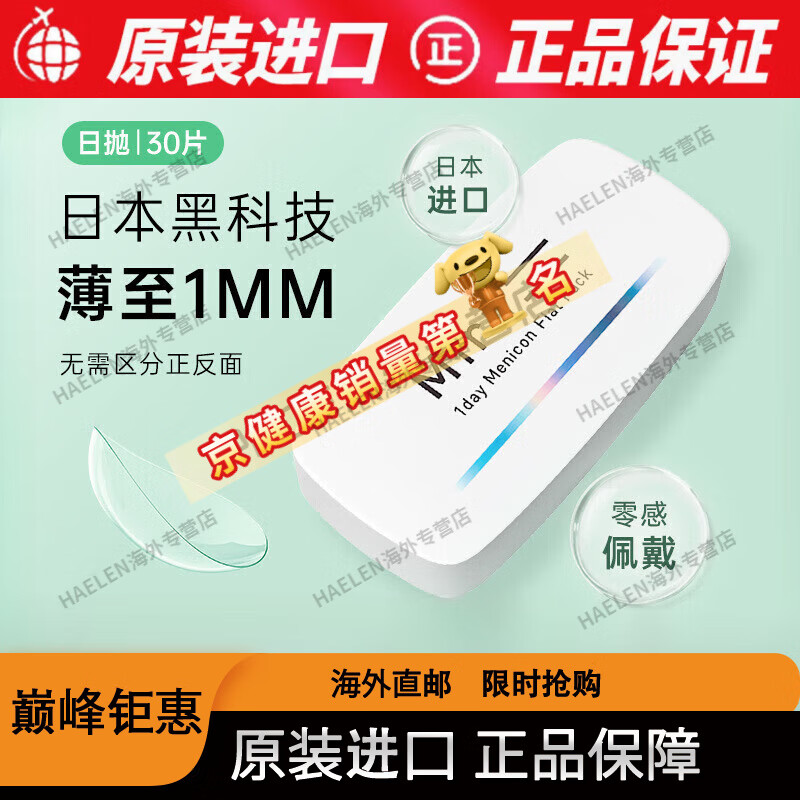 京健康膳隐形眼镜日抛日本米如隐形眼镜日抛盒30片装水润透明片 日抛 100度