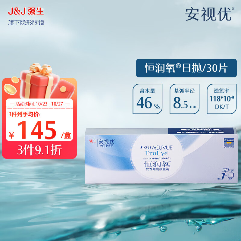 强生安视优恒润氧日抛30片硅水凝胶近视隐形眼镜有高度数隐形眼镜 日抛30片 325度
