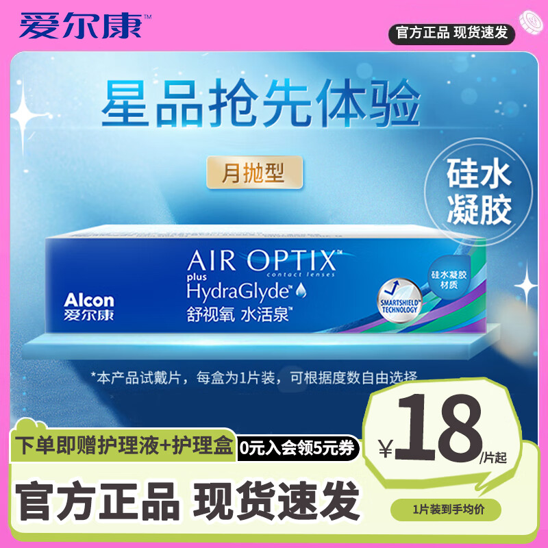 爱尔康【试戴装】舒视氧水活泉近视隐形眼镜月抛硅水凝胶进口透明片正品 1片装【尝鲜装】 350度