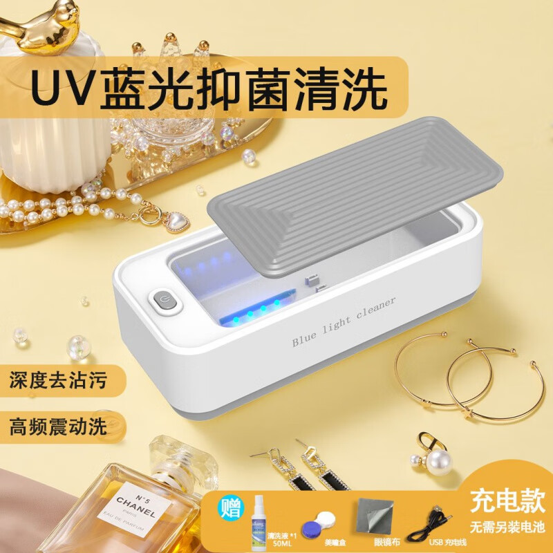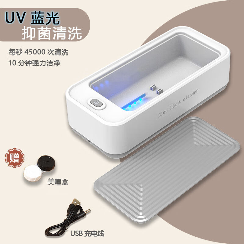 TLXT蓝光眼镜清洗机充电款首饰牙套手表清洁盒美瞳隐形眼镜清洗器 【白色USB充电】 【标配版】快速清洁