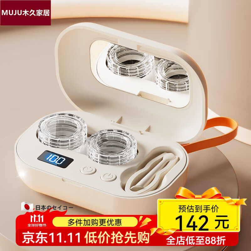 日本进口隐形眼镜清洗器充电动超声波全自动清洁美瞳盒便携收纳盒 【充电款】象牙白(含清洗双联盒*