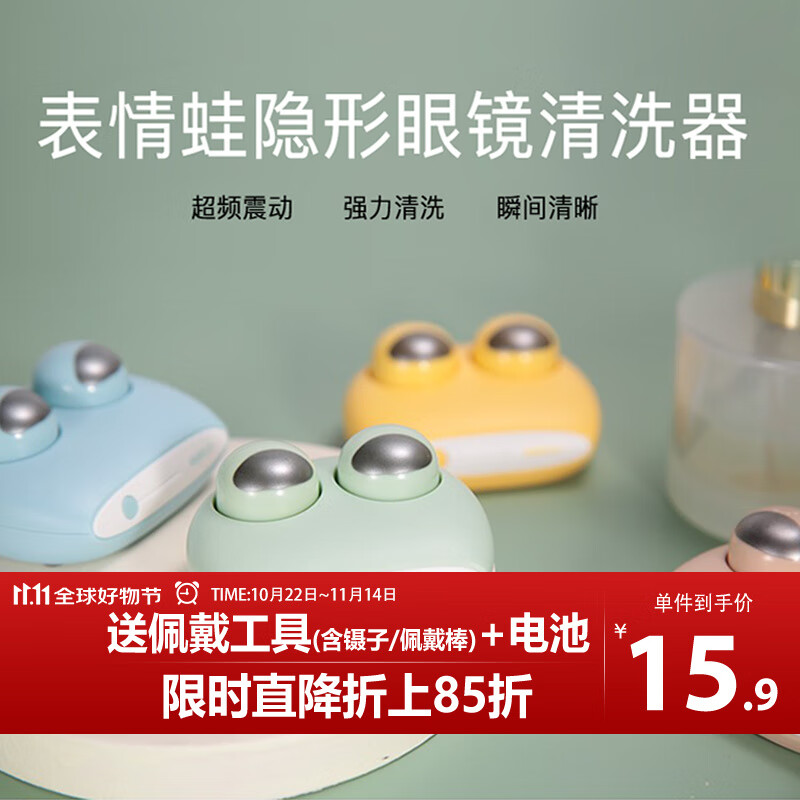 eyekan隐形眼镜美瞳电动清洗器自动声波冲洗机仪盒子清洗非充电款 小绿蛙清洗器(电池款)