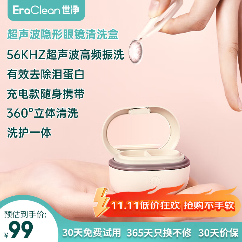 EraClean超声波隐形眼镜清洗器隐形眼镜盒子超声波清洗机美瞳清洁机 充电款【30天试用 99%杀菌率】