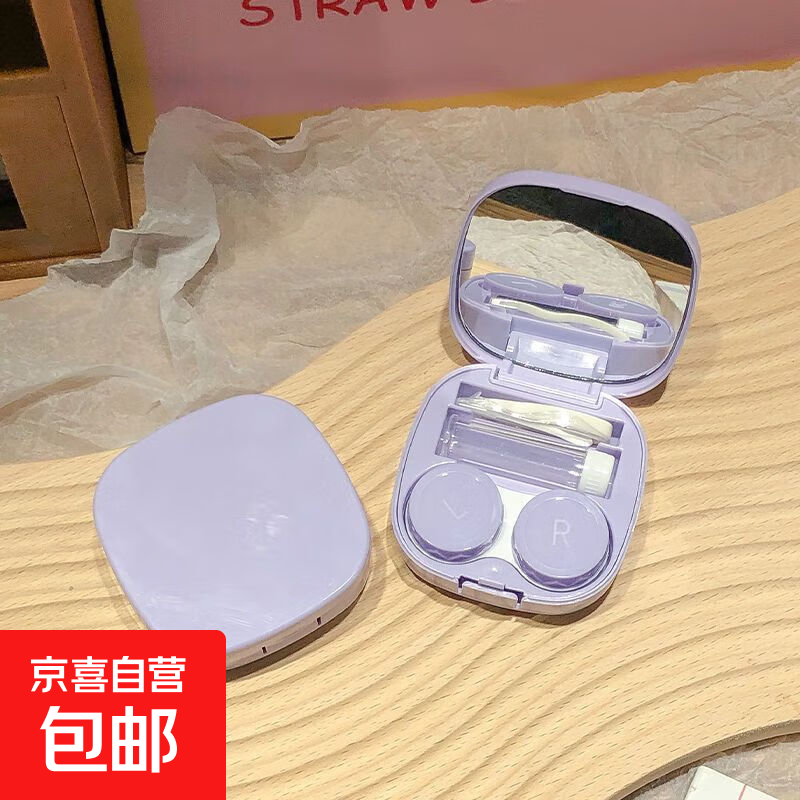 美瞳盒学生便携收纳盒高级感简约轻便纯色小巧防漏可爱 【紫色】马卡龙