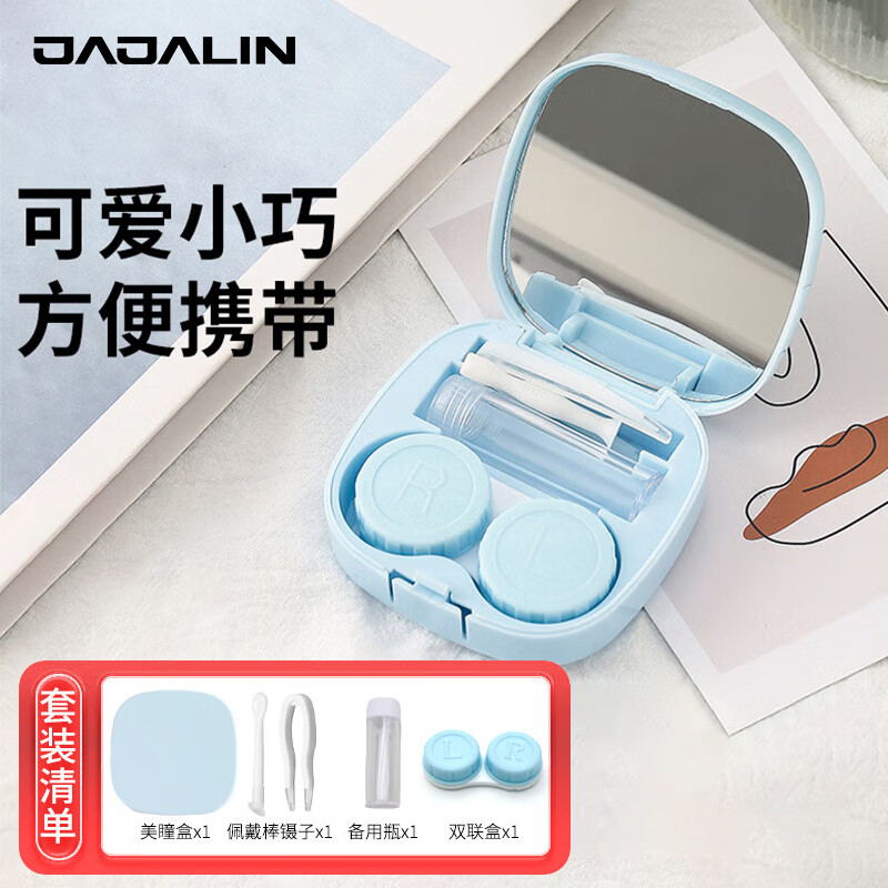 JAJALIN隐形眼镜盒旅行便携简约隐形眼镜盒光面DIY便携式伴侣盒蓝色