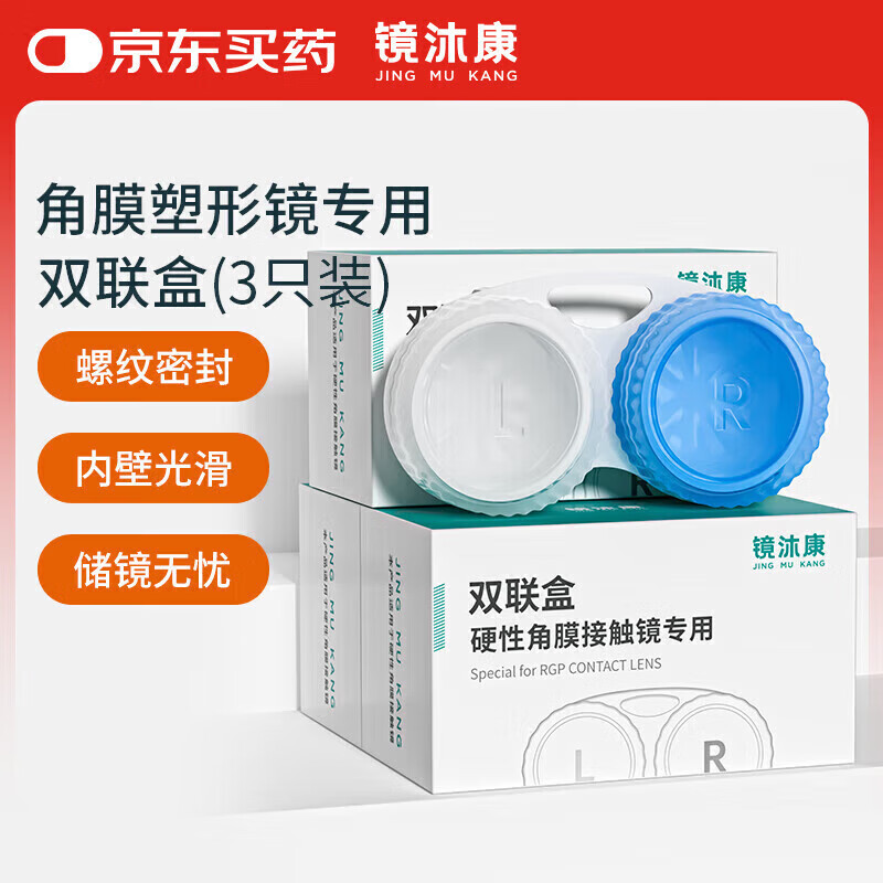 镜沐康OK镜双联盒储存盒角膜塑形镜硬性隐形眼镜RGP眼镜收纳盒便携储存