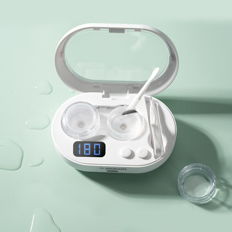 隐形眼镜清洁器可充电便携式电动隐形眼镜盒超声波清洗机高频冲洗 白色