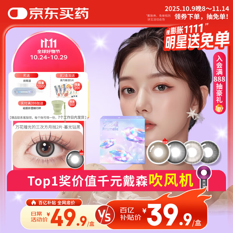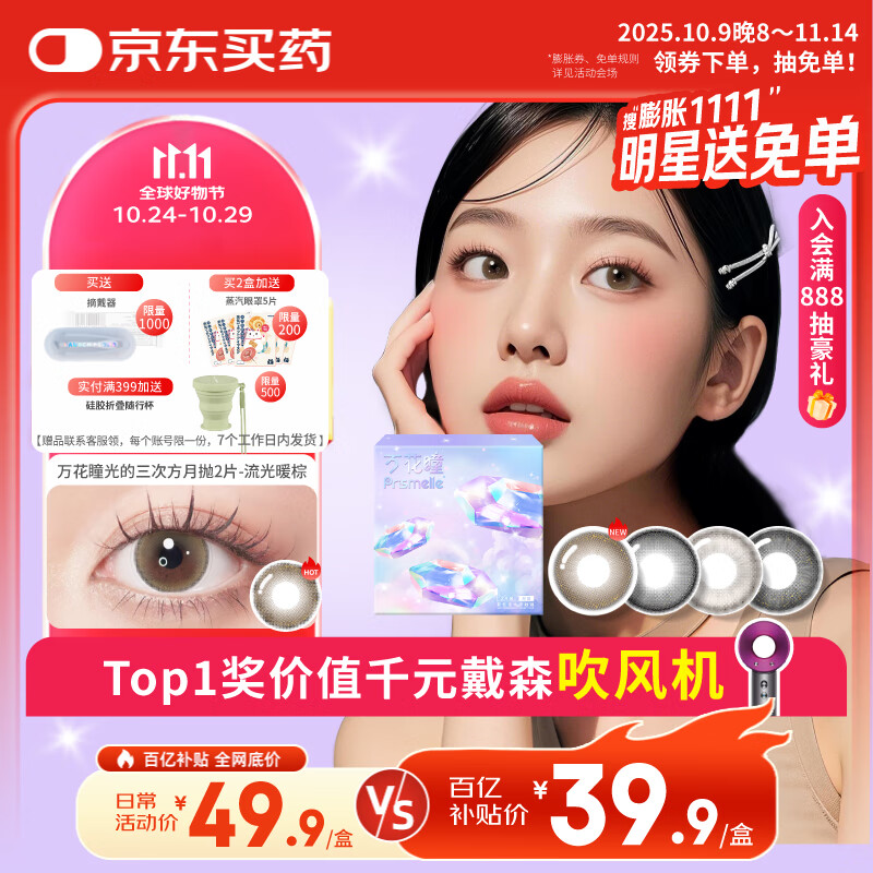 博士伦美瞳月抛彩色隐形眼镜大小直径美瞳光的三次方月抛2片