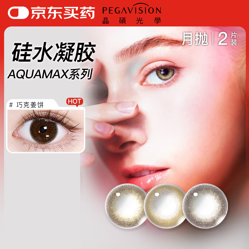 晶硕AQUAMAX高透氧硅水凝胶美瞳彩色隐形眼镜月抛2片装 抹茶奶霜450度