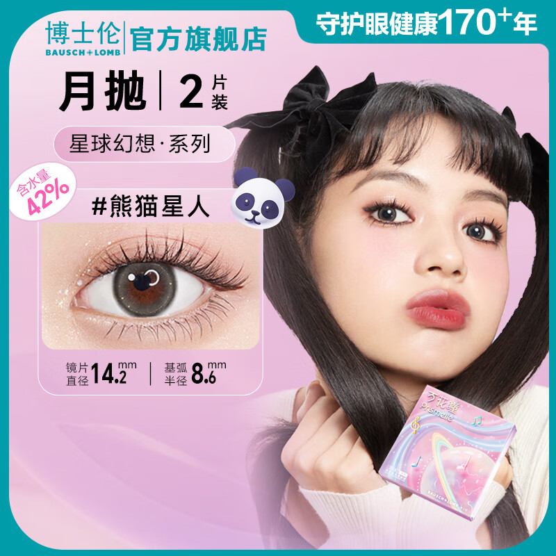 博士伦万花瞳星球系列月抛2片美瞳隐形眼镜 黑灰#熊猫星人月抛2片(三色灰02) 550度