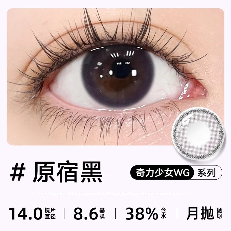 海俪恩美瞳女月抛2片装彩色近视隐形眼镜盒自然小直径 原宿黑 425度