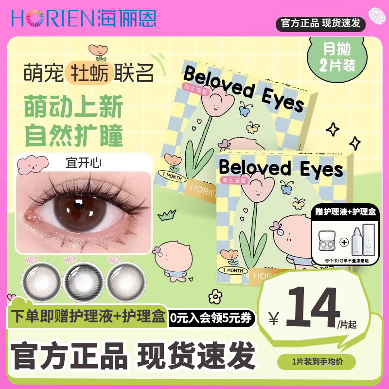 moody美瞳月抛隐形眼镜精选系列2片装近视眼镜三明治黑糖甜豆650度
