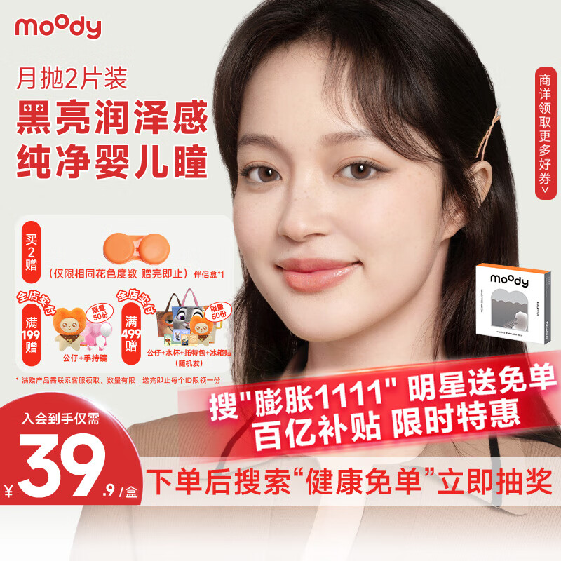 moody美瞳月抛隐形眼镜精选系列2片装近视眼镜三明治早八美式450度